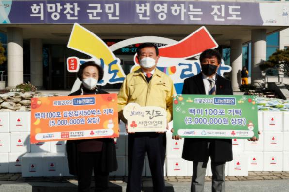 또 진도군새마을금고(이사장 이창배)에서도 백미 10kg 100가마를 현물로 지정 기탁했다.