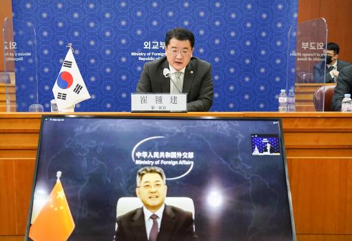 최종건 외교부 제1차관은 12.23일 러위청 중국 외교부 부부장과 화상으로 한·중 외교차관 전략대화를 갖고, ?한중관계 ?한반도 문제 ?지역·국제정세 등 양국 간 상호 관심사에 대해 심도 있는 협의를 가졌다.