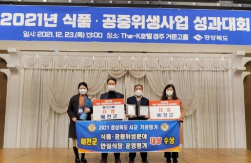 예천군은 23일 경상북도가 23개 시?군을 대상으로 시행한 ‘2021년 식품?공중위생관리사업 평가’와 ‘경북 안심식당 운영 평가’ 2개 분야에서 모두 ‘대상’ 기관으로 선정되는 영예를 안았다.