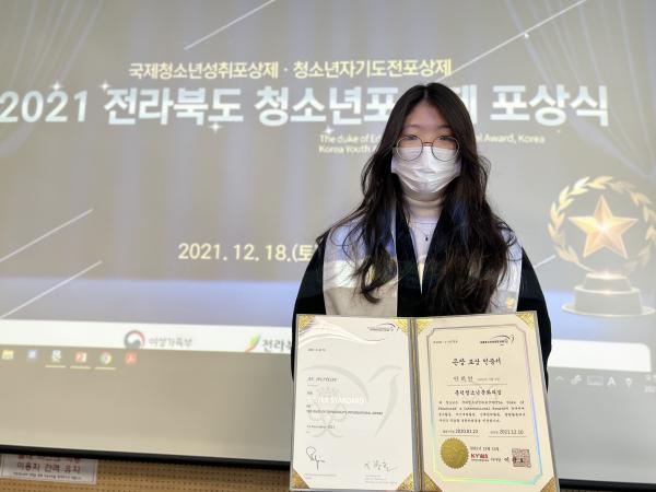 고창군 10대 여고생이 청소년포상제에 도전해 은장을 수상하며 화제를 모으고 있다.