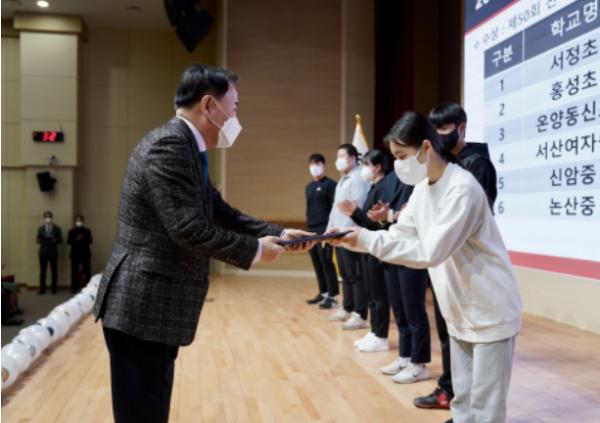 충청남도교육청은 23일 도교육청 대강당에서 전국종합체육대회 입상 대표선수, 지도교사, 학교장, 교육장, 외부 수상자 180여명이 참석한 가운데 ‘2021년 학교 체육 활성화 유공 종합 시상식을 개최했다.