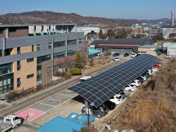 지난 10월 사업을 착공하고, 12월 50kW 규모의 주차장형 태양광 발전설비를 설치하였다.