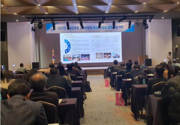 충청남도교육청은 23일 2021년 고교학점제 학교공간조성 성과나눔마당을 일반고 교직원 및 교육지원청 담당자 등 75명이 참석한 가운데 개최했다.