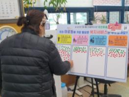 주민투표는 코로나19 확산 방지를 위해 자생단체 회원 및 이로동행정복지센터를 내방하는 민원인을 대상으로 보드판에 스티커를 부착하는 방식으로 진행되고 있다.