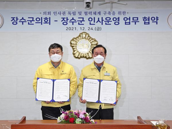 장수군의회와 장수군은 24일 내년 지방의회 인사권 독립에 따른 원만한 인사운영을 위한 업무 협약을 체결했다.