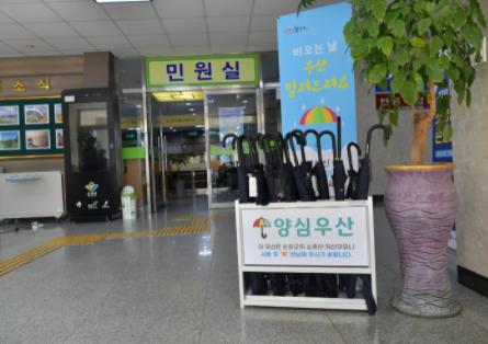 양심우산은 군청 민원실 안내데스크에 비치되어 있으며 필요로 하는 군민 모두가 간단한 인적사항을 작성한 후 대여하여 이용하고 7일 이내에 자율적으로 반납하면 된다.