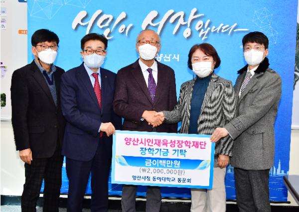 양산시청 동아대동문회에서 23일 지역인재 육성을 위한 장학금 200만원을 전달했다.