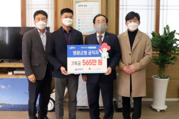 영광군청 공직자는 지난 23일 「희망2022 나눔캠페인」에 성금 565만원을 기탁하며 나눔을 통해 안전하고 행복한 영광 만들기와 지역 사랑의 온도를 높이는 데 앞장섰다.