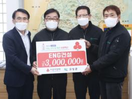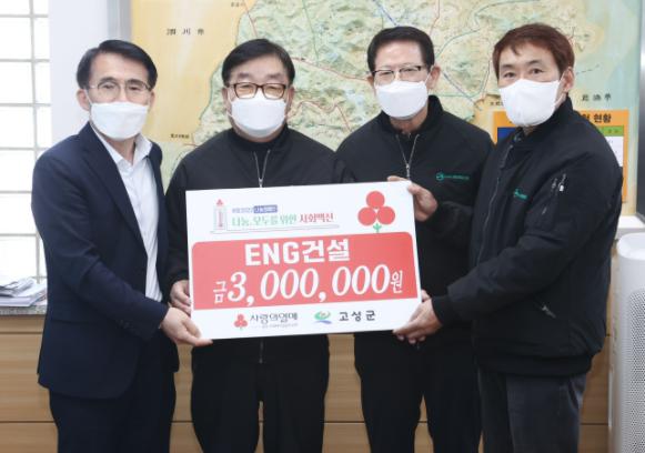 ENG건설은 12월 17일 고성군청을 방문해 관내 어려운 이웃에게 사용해 달라며 성금 300만 원을 전달했다.