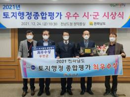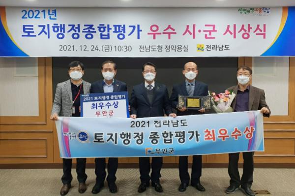 무안군은 2021년 전라남도 주관 토지행정평가에서 최우수상을 수상했다고 밝혔다.