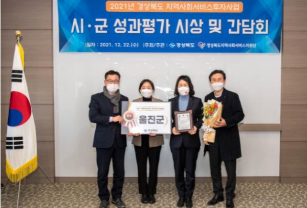 울진군은 경상북도와 경북행복재단에서 도내 22개 시군을 대상으로 실시한‘2021년 경상북도 지역사회서비스투자사업 시·군 성과평가’에서 우수 지자체로 선정되었다.