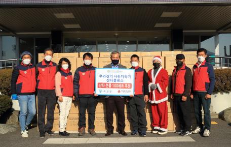 기탁받은 선물세트는 행복나눔봉사단(회장 김선중)에서 어려운 이웃 100세대를 각각 방문하여 선물을 전달할 예정이다.