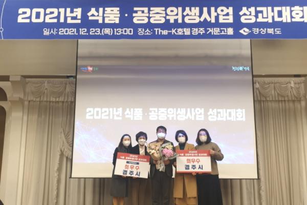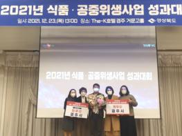 경주시는 23일 보문 더케이호텔에서 열린 ‘2021년 식품·공중위생사업 성과대회’에서 △식품·공중위생 관리사업 종합평가 △안심식당 운영 우수 시군평가 등 2개 부문에서 최우수상을 수상하는 성과를 거뒀다.