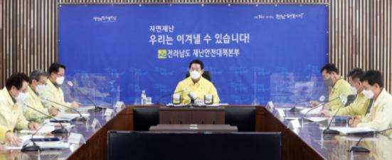 김영록 전라남도지사는 26일 도청 재난종합상황실에서 실국장이 참석한 가운데 지난 25일부터 전남지역에 발효된 대설 및 강풍특보에 대한 대처상황 점검 회의를 가졌다.