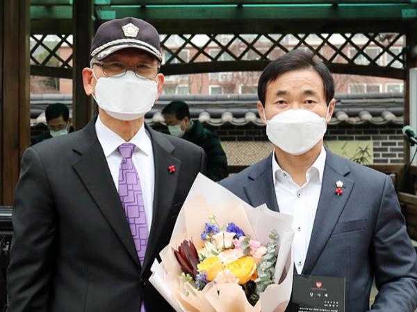 김낙종 회장은 “지역 주민의 쾌적한 거주환경과 생활 편의 제고를 위한 아파트 환경개선에 애써주셨다”며 “살기좋은 아파트를 조성하는 데 크게 이바지한 공에 대한 감사의 의미를 전하기 위해 입주민의 마음을 모아 패를 드리게 되었다”고 취지를 설명했다.