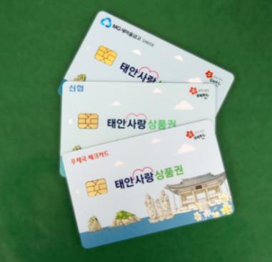 한편, 태안군은 지류형 상품권의 한계를 극복하기 위해 지난해 11월 체크카드처럼 쓸 수 있는 카드형 태안사랑상품권을 출시했으며, 은행 방문 없이 온라인으로 충전이 가능하고 현금영수증 발급 요청을 따로 하지 않아도 되는 장점이 있어 큰 인기를 끌고 있다.
