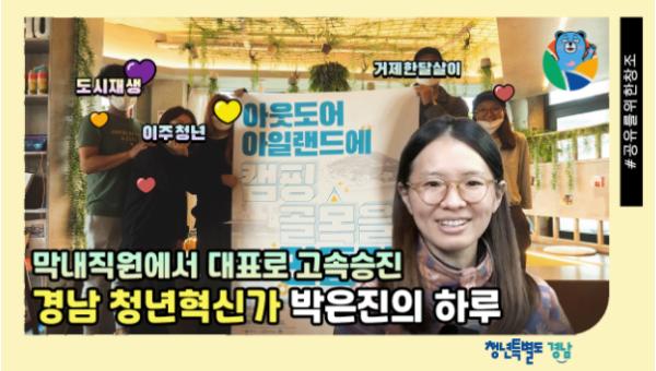 경상남도는 지역 청년활동가 성공 모델의 비결 및 경험 공유를 위하여 도내 청년혁신가의 일상을 보여주는 ‘아무튼 청년’ 영상을 제작했다.