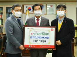오대국 대표이사는 "연말연시를 맞아 지역의 어려운 이웃들에게 도움이 되었으면 하는 마음에 작년에 이어 올해도 성금을 기탁하게 되었으며, 추운 겨울날 도움의 손길이 필요한 이웃들을 위해 쓰이길 바란다."고 전했다.