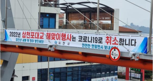 27일 사천시에 따르면 코로나19 예방 및 확산 방지를 위해 지난해에 이어 올해도 삼천포대교 해맞이 행사를 전면 취소하기로 결정했다.