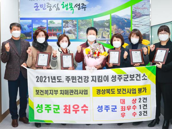 성주군은 코로나19 확산 방지를 위한 신속 대응에 총력을 기울이는 한편 '군민중심 건강관리, 함께 만드는 행복성주'를 비전으로, 군민 건강증진을 위한 맞춤형 보건의료서비스를 제공한 결과 2021년도 사업평가에서 보건복지부 ‘치매사업’ 최우수상, 경상북도 주관 보건사업 6개 부문에서 수상하는 쾌거를 이루었다.