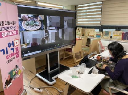 ‘기억 더해줌’온라인 쉼터 프로그램은 뇌 자극 체조. 인지재활수업(작업치료), 운동수업, 미술수업, 도예수업, 원예수업 등 다양한 인지자극 수업으로 구성되어 있고, 전문 강사를 초빙하여 다양하고 체계적으로 시행됐다.