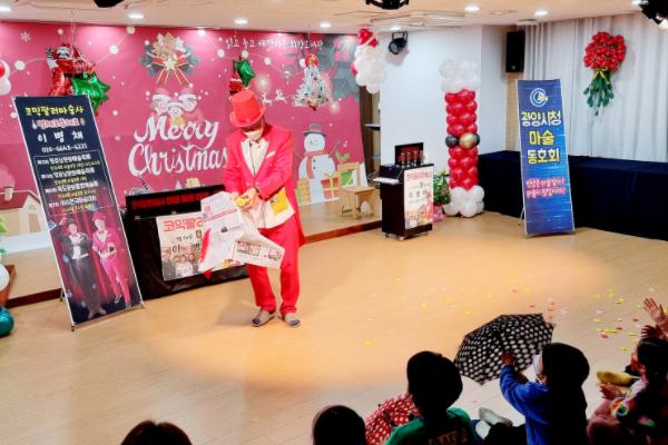 동호회 회원들은 손수건, 마술봉, 끈 등 다양한 도구를 활용해 마술을 선보였으며, 행사 중간 산타로 변신해 관객석으로 찾아가 어린이들에게 선물을 나눠주며 행사의 흥을 돋웠다.