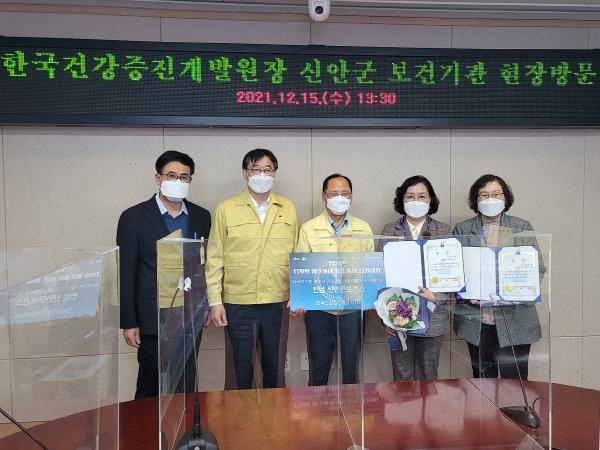 한편 지난 15일에 한국건강증진개발원장이 신안군을 방문, 건강지표 등 신안군의 현황을 청취하고 코로나19로 인한 사업 관련 애로사항 등 의견수렴의 자리를 갖고 우수기관 표창을 수여하였다.