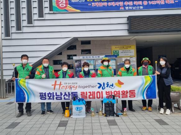 오미크론 변이 확산으로 인해 코로나-19 확진자가 급증한 가운데 코로나-19의 확산을 막고 주민들의 불안감을 달래기 위해 평화남산동 자율방재단에서 연말 방역활동에 나섰다. 단원들은 평화남산동 행정복지센터에서 출발하여 유동인구가 많은 김천역과 상가 구역을 중심으로 소독약을 분포하고 닦아냈다. 거리의 미관을 해치는 쓰레기를 줍는 등 환경정비활동도 함께 이루어졌다.