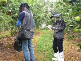 일자리 창출 사업 일환으로 병해충 예찰 요원 2명을 확보하고, 지난 3월부터 11월까지 사과?배 등 주요 과수 8개 품목 550ha에 대해 병해충 예찰과 방제 지원을 추진했다.