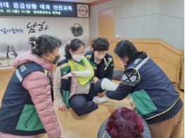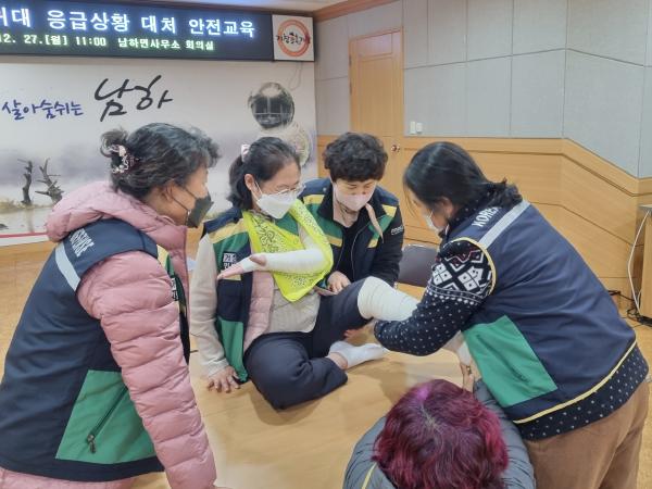 거창군 남하면 주부민방위기동대는 27일 남하면사무소 회의실에서 대원 10명이 참석한 가운데 응급상황 대처 안전교육을 실시했다.