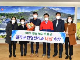 칠곡군은 경상북도에서 주관하는‘2021년 경상북도 환경상’평가에서‘대상’을 수상하며 3년 연속 기관 표창을 수상하는 쾌거를 이뤘다.