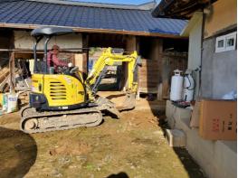 이에 건설업에 종사 중인 최도현 단원이 포클레인 장비를 동원해 터파기와 땅 고르기 및 정화조 매립 공사를 하였고 배관 설비 및 수세식화장실 설치 등은 이성호 단장이 그리고 새시 및 유리창 교체는 창호 전문가인 백원용 단원이 지원했다.