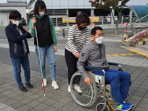 북경주행정복지센터는 장애인 보행환경 개선과 사회통합 분위기 조성을 위해 최근 보행약자 이동편의 체험행사를 실시했다.
