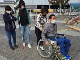 이번 체험행사에서는 이상원 센터장을 비롯한 직원들이 휠체어와 흰 지팡이를 이용해 인도, 경사 가파른 길 등을 걸으며 작은 턱과 경사 있는 길이 장애인들에게는 위험한 장애물이 될 수 있음을 인지하고, 불편과 고통을 직접 체험함으로써 안전사고 예방을 위해 함께 노력하자는 의지를 다지는 시간을 가졌다.