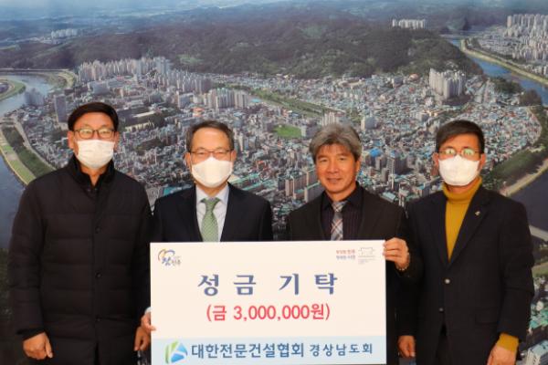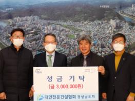 대한전문건설협회 경상남도회는 27일 어려운 이웃을 위해 써 달라며 성금 300만 원을 진주시복지재단에 전달했다.