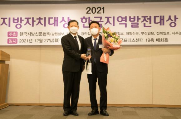 한국지방자치대상은 한국지방신문협회가 그해 지역 발전에 가장 큰 공로가 인정되는 광역·기초단체장을 선정해 수여하는 상이다.