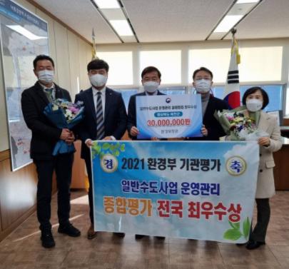 예천군은 환경부에서 주관한 ‘2021년 일반수도사업 운영?관리 실태 평가’에서 전국 161개 수도사업자 중 5만명 미만 47개 군부 중 전국 ‘최우수’ 기관으로 선정돼 인증패와 포상금 3천만 원을 받았다.