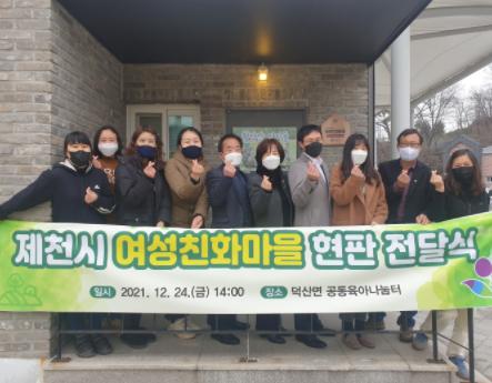 제천시는 지난 24일 덕산면 공동육아나눔터에서 여성친화마을 현판 전달식을 개최하고 덕산면을 제1호 여성친화마을로 지정했다고 밝혔다.