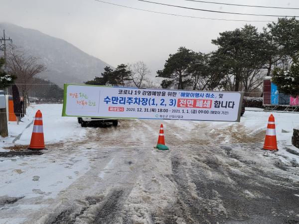 화순군이 오는 31일과 1일 해맞이 명소 수만리·동구리 주차장을 일시 폐쇄한다.