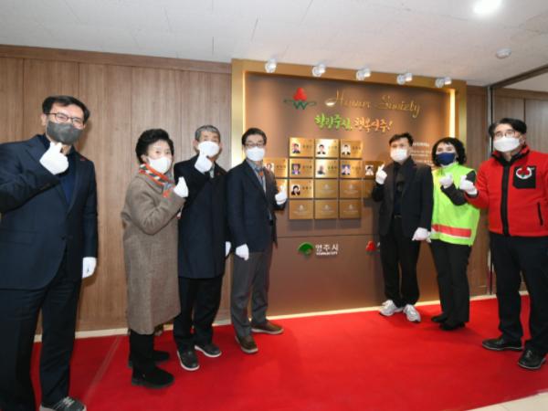 경북 영주시는 지난 27일 시청 2층 복도에 고액기부자들의 나눔과 기부 정신을 기리고, 사회적 분위기 조성을 위해 아너 소사이어티 홍보존을 설치하고 제막식을 가졌다.