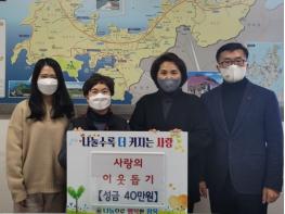 27일 장목면 여성의용소방대에서 이웃돕기 성금 20만 원, 장목면 생활개선회에서 10만 원, 장목면 주민 이동균씨가 개인적으로 10만 원을 기탁하여 장목면사무소에 총 40만 원이 기탁됐다.