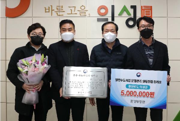 의성군은 2020년 물관리 최우수기관 선정, 2020년 예산 효율화 사례평가 대상 수상에 이어 올해 환경부가 주관한 일반수도사업 운영·관리 실태평가에서도 장려상을 수상하여 500만원의 포상금과 인증패를 받게 되었다.