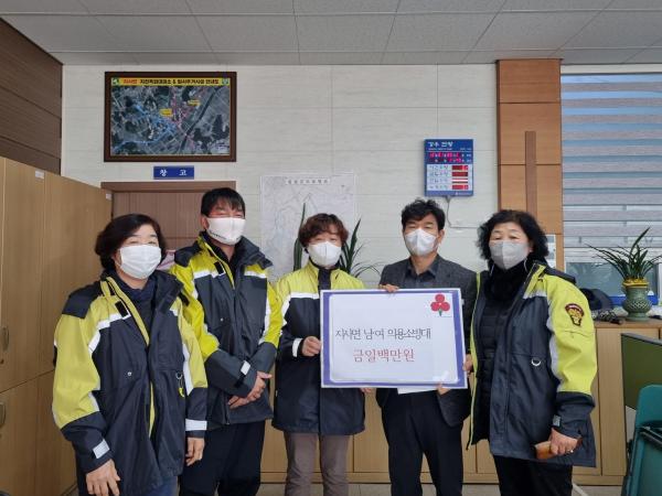 지사면 남녀 의용소방대가 지난 27일 면사무소를 찾아 관내 어려운 이웃을 위해 써달라며 지사면 행복보장협의체에 현금 100만 원을 기탁 하였다.