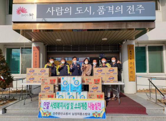 전주완산소방서 의용소방대는 연말을 맞아 어려운 이웃에 사랑 나눔을 위한 라면과 휴지 등(200만원 상당)을 효자3동에 전달했다.