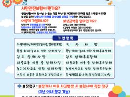 이번 추가 가입으로 시민안전보험으로 보장받을 수 있는 항목은 태풍과 홍수, 지진 등 자연재해로 인한 사망, 익사사고로 인한 사망, 폭발, 화재, 붕괴로 인한 사망 및 후유장해, 강도에 의한 사망 및 후유장해, 대중교통 이용 중 교통사고에 의한 사망 및 후유장해, 농기계 사고에 의한 사망 및 후유장해, 만 12세 미만 어린이가 스쿨존에서 입은 교통사고로 인한 부상, 감염병 사망 등 12개 항목이 되었다. 감염병 사망의 경우 5백만원, 나머지 보장항목은 최대 1천만원 한도로 보장하고 있다.