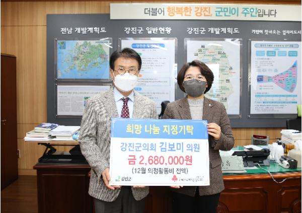 강진군의회 김보미 의원이 지난 24일 강진군 지역아동센터를 지원해 달라며 260만 원을 기탁했다.