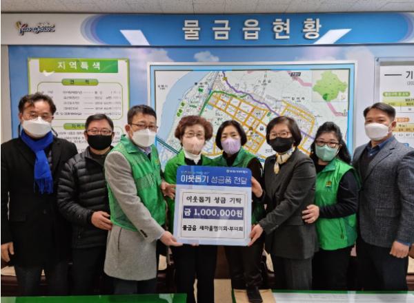 양산시 물금읍 새마을협의회?부녀회는 지난 27일 동절기 및 코로나19 장기화로 어려움을 겪고 있는 복지위기가구를 위해 사용해 달라며 물금읍 지역사회보장협의체에 100만원을 기탁했다.