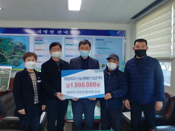 문주석 대병면장은 “평소에도 지역과 주민들을 위해 봉사하시는데, 어려운 시기에 이웃의 따뜻한 연말을 위해 희망2022 나눔 캠페인에 동참해주신 대병면 이장협의회에 다시 한번 감사를 드린다”고 말했다.