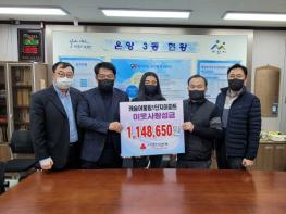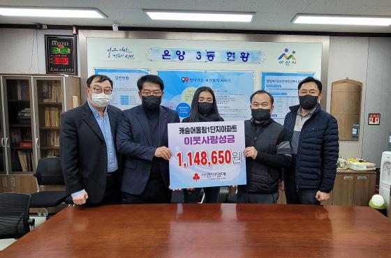 아산시 온양3동 모종캐슬어울림1단지아파트 입주자대표회의(가 12월 27일 온양3동 행정복지센터를 방문해 희망 2022 나눔 캠페인 이웃돕기 성금을 전달했다.