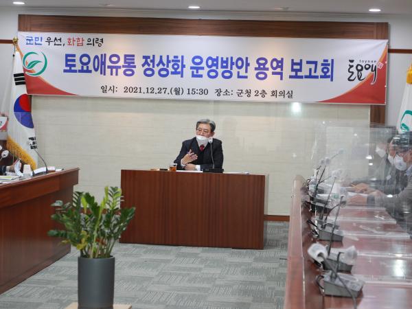 의령군은 출자·출연기관인 토요애유통회사 경영활성화 방안 모색을 위해 ‘토요애유통 정상화 운영방안’ 연구용역 최종 보고회를 27일 개최하였다. 이번 용역은 지난 9월 착수하여 80일간 진행됐다.